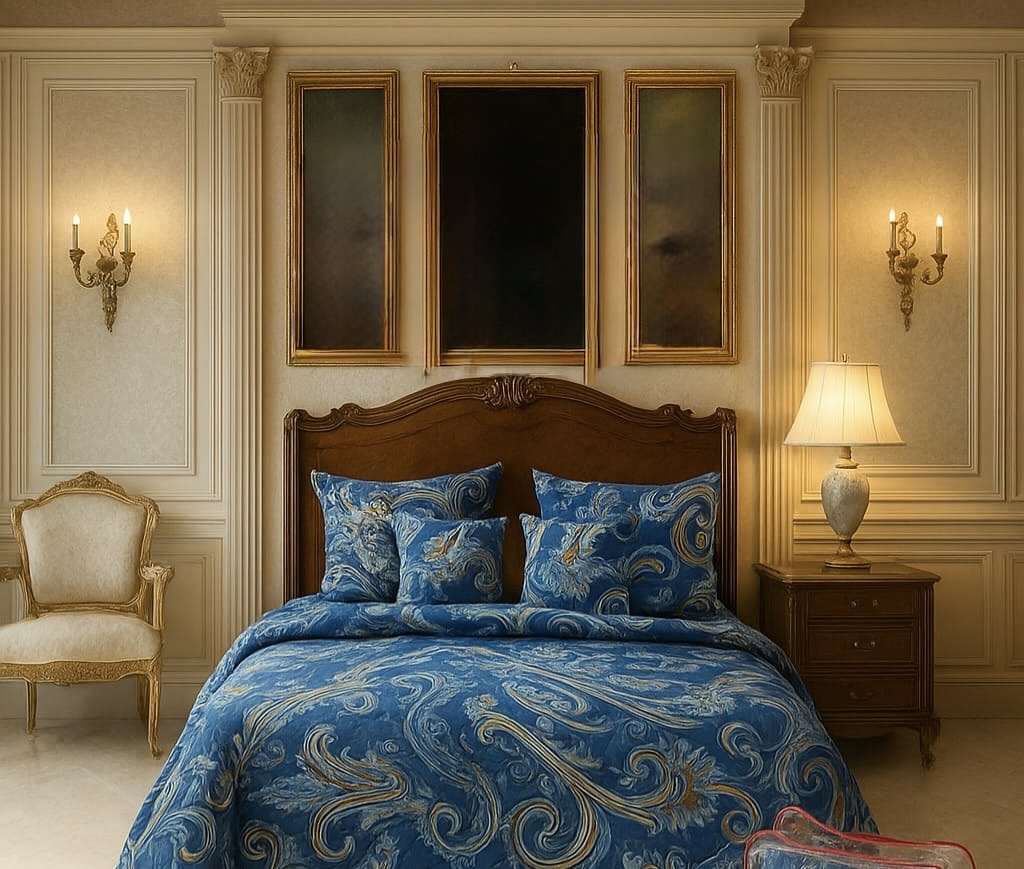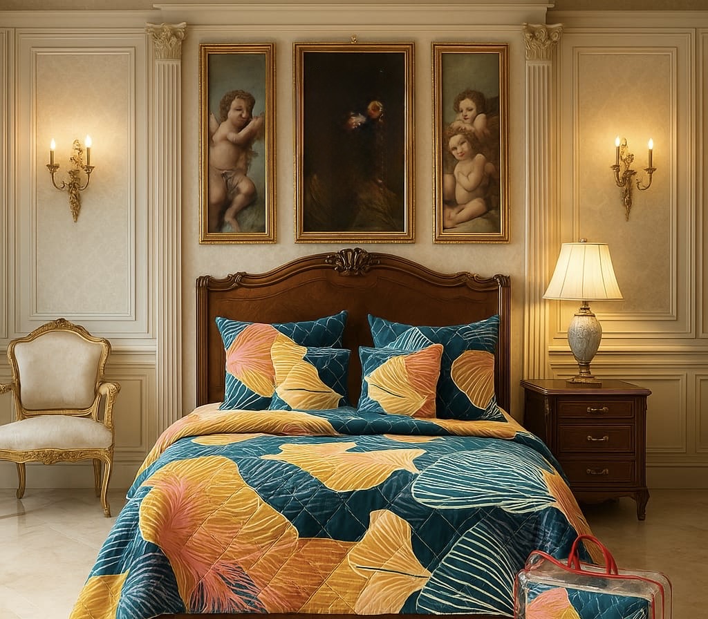 Elegant Floral Leaf Printed Bedding Set in Luxe Royal Bedroom